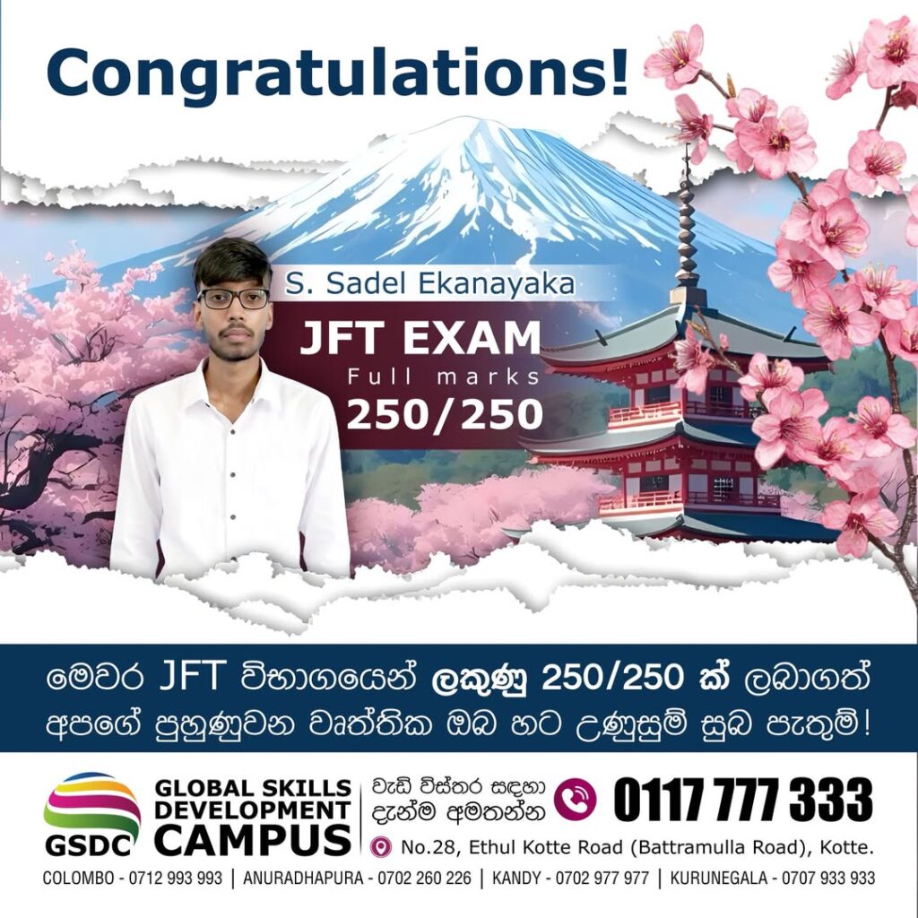 🇯🇵 Congratulations on achieving 250/250 full marks in the JFT Japanese Language Exam! Learning the language of Japan requires dedication, practice, and strong commitment, and this excellent result clearly shows your hard work. The JFT exam, conducted by the Japan Foundation, measures practical Japanese communication skills needed for daily life and work, and scoring full marks is a rare and outstanding achievement. This success also creates a great opportunity to work in Japan as a professional and build a strong international career. We at GSDC Campus are very proud of your achievement and wish you even greater success in the future. Your accomplishment is an inspiration to other students who dream of building their careers with Japanese language skills. 🎉🇯🇵